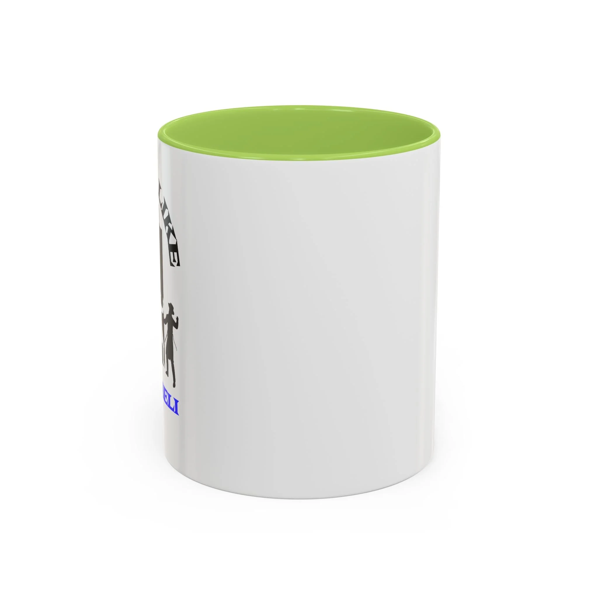 - White ceramic body with colored interior and C-shaped handle